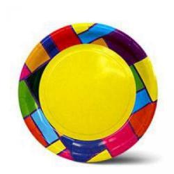 Тарелка бумажная Д-230мм Цветное рандеву (50шт) (500ту)