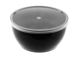 Банка из черного полипропилена подходит для пресервов, солений, салатов, горячих обедов, икры, меда. Объем 360 мл, диаметр верхнего края 112 мм.
