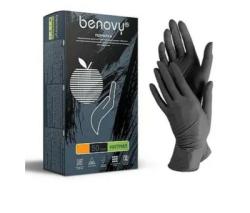 Перчатки нитриловые неопудренные смотровые Бенови M черные (100шт) (1000ту)