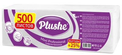 Салфетки 24х24см 1-слойные Плюше 500л макси белые (5ту)